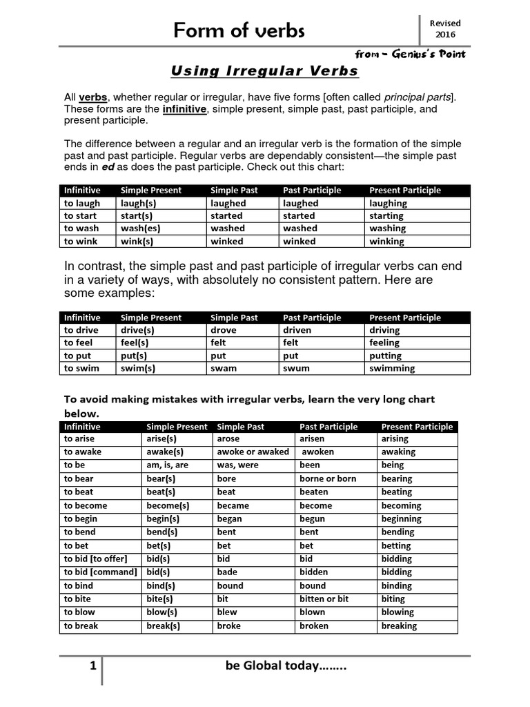 Giant Irregular Verb List Plus Understanding Regular And Irregular Verbs Teaching Writing Fast And Effectively - With lingolia plus you can access 7 additional exercises about participles, as well as 774 online exercises to improve your english.