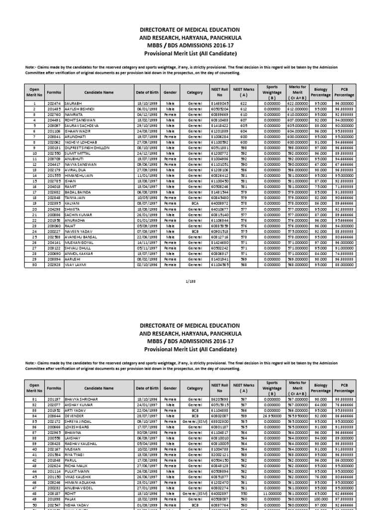 Merit List 2016 Haryana Pdf Qualifications Health Care - Neet pg 2013 revised rank list.