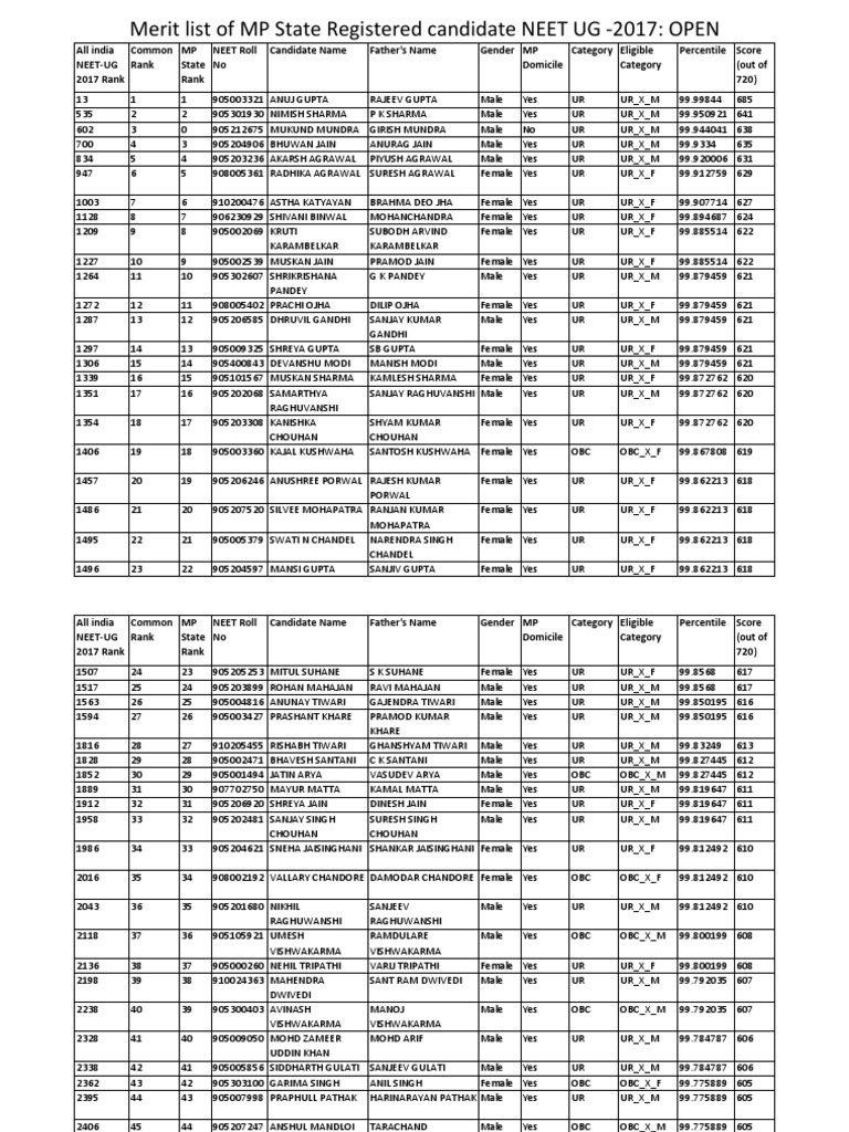 Common Merit List Of All Mp Online Registered Candi Sikhism - Neet 2020 state rank list derives on the basis of marks obtained in the offline entrance examination.
