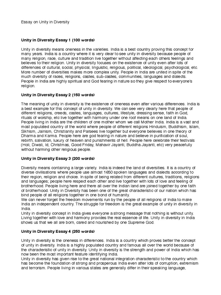Unity In Diversity Unity In Diversity Unity In Diversity Essay Easy Essay - But in spite of all these differences, we have managed to show unity.